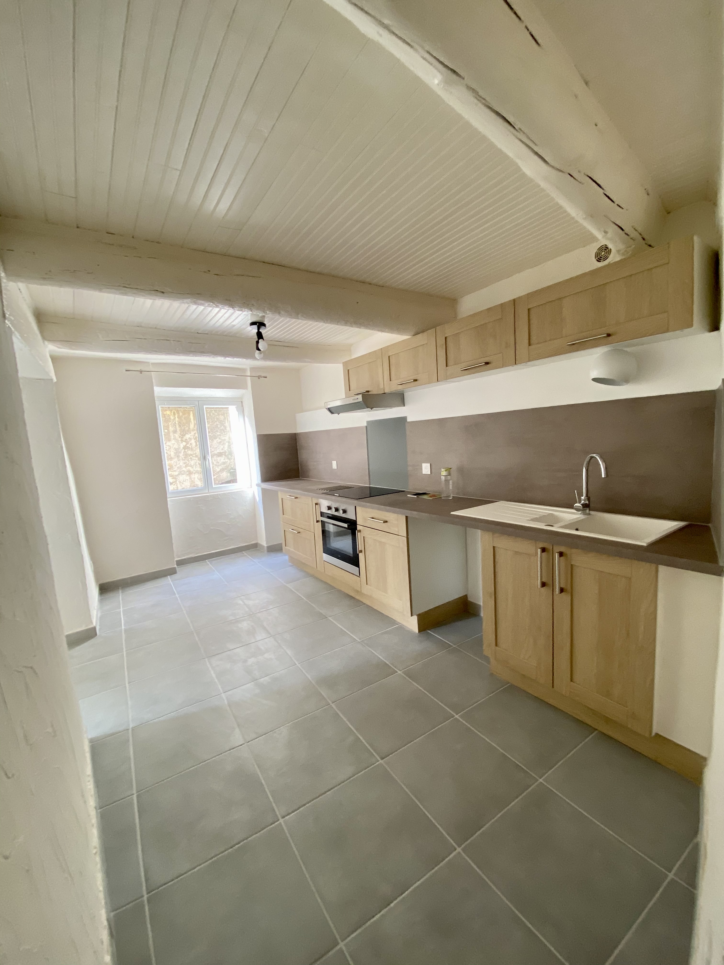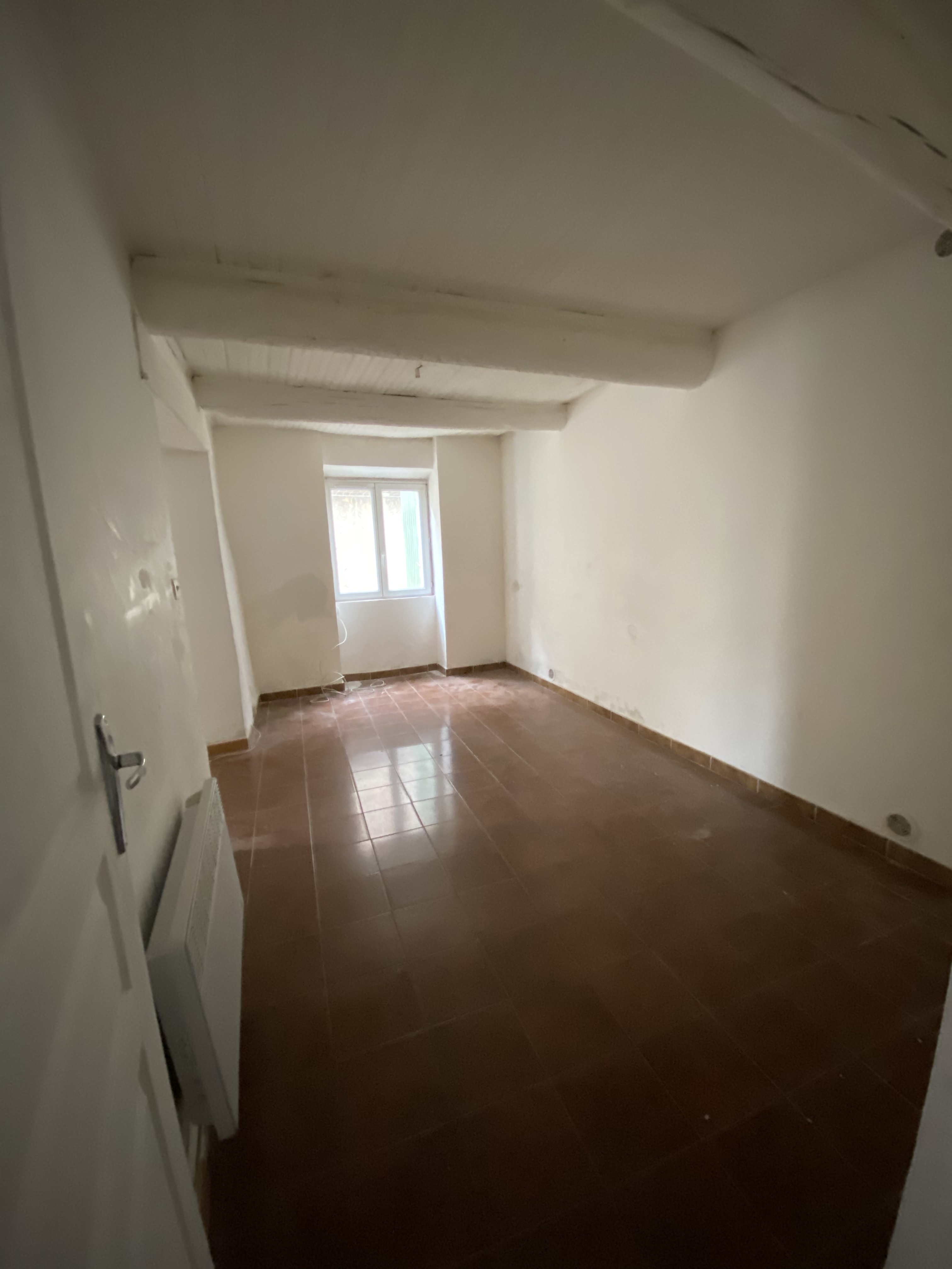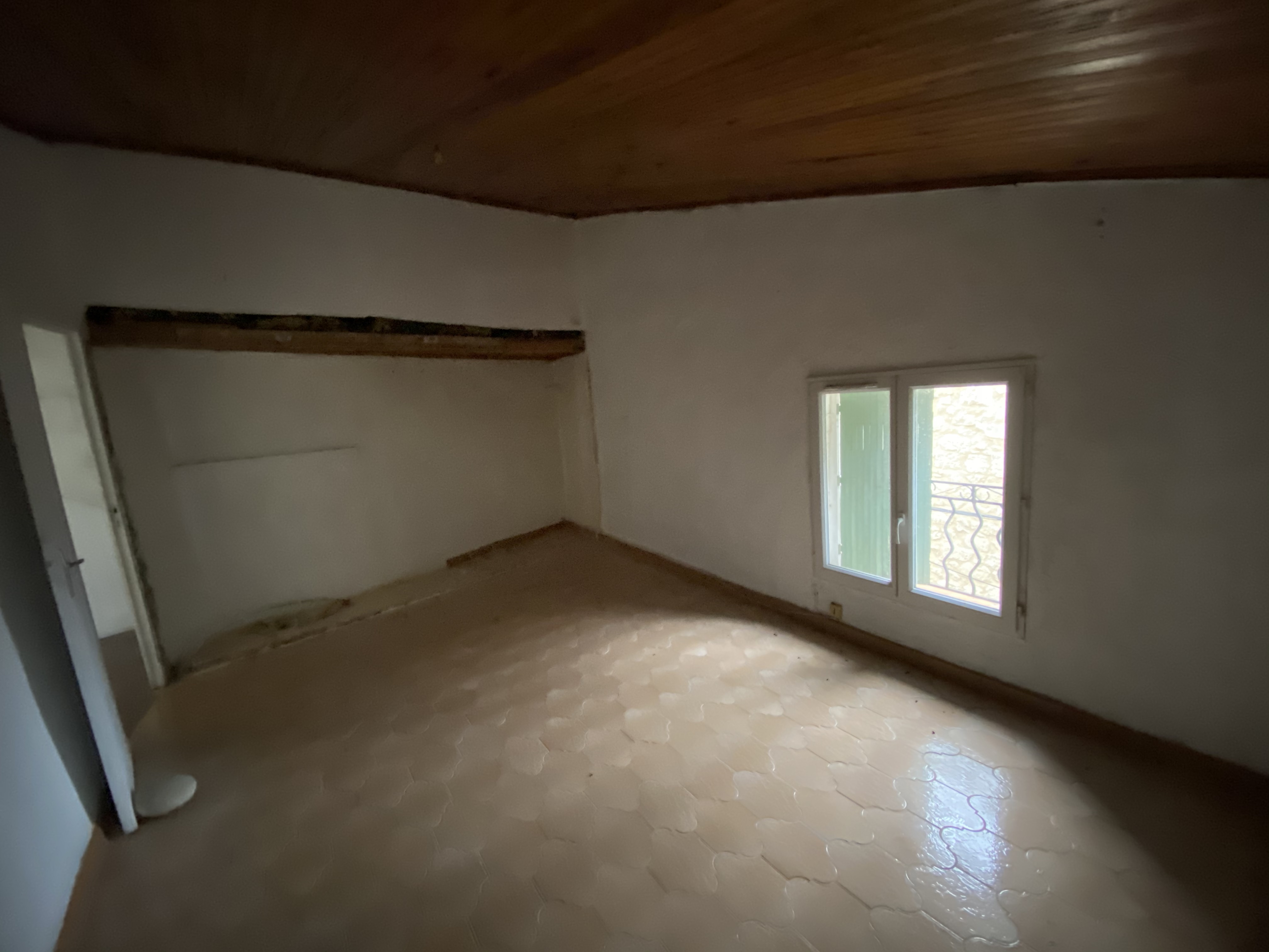 Ancienne cuisine transformée en chambre avec pierre apparente de la voûte